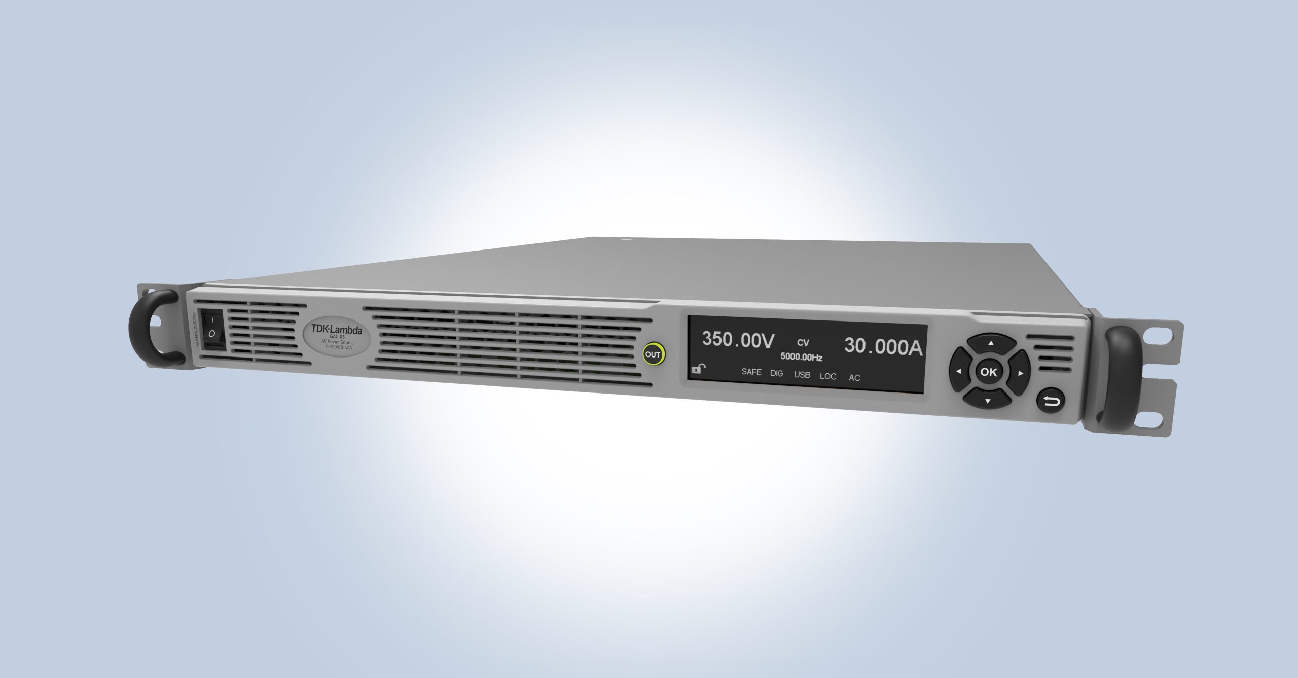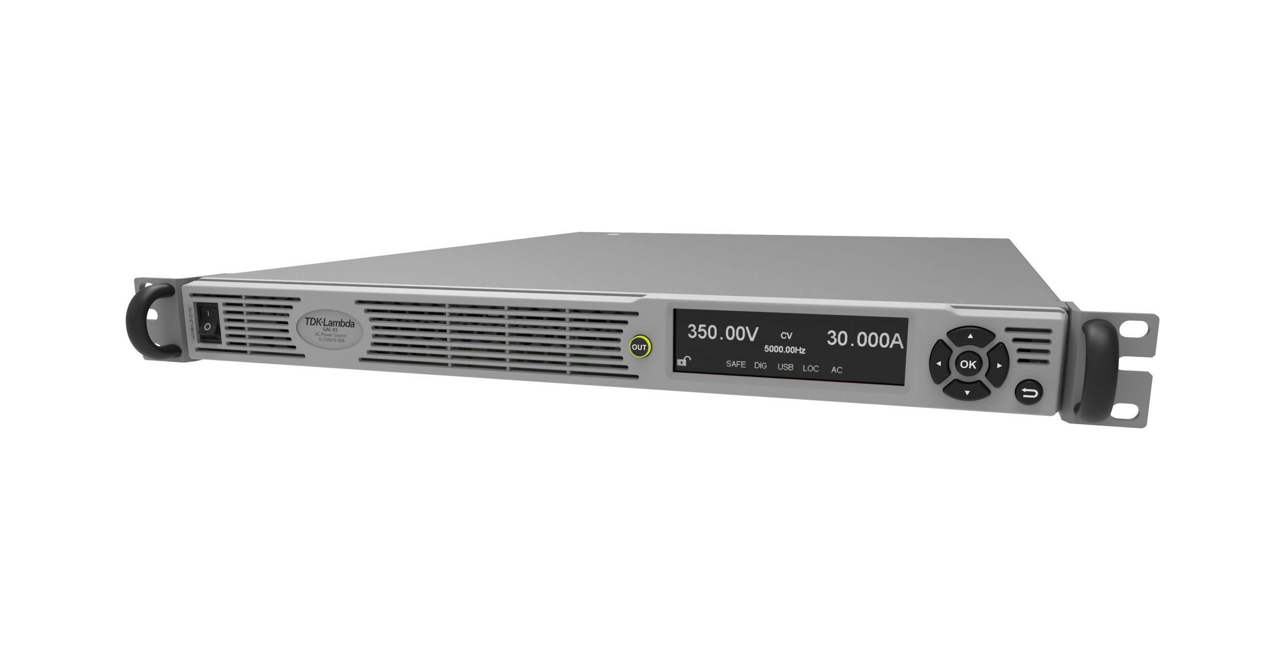 TDK Corporation (TSE 6762) announces the introduction of the TDK-Lambda brand GENESYS™ AC (GAC) and GENESYS™ AC PRO (GAC-PRO) series of 2kVA and 3kVA rated programmable AC power sources. These latest products represent a significant expansion in test and measurement capability to the current GENESYS™ series of 750W to 90kW programmable DC power supplies. With a 1U chassis height, the GAC and GAC-PRO provide the highest power density for a fully featured programmable AC power source.