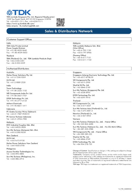 TDK (Thailand) Co., Ltd. TDK-Lambda Products Dept. Tel: +60-4-611-7131